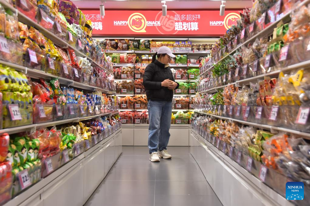 A customer shops at a snack shop in Mengzi of Honghe Hani and Yi Autonomous Prefecture, southwest China's Yunnan Province, April 16, 2025.