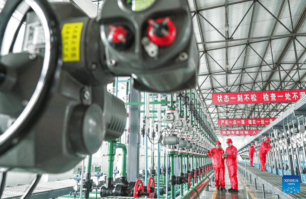 Staff check equipment of Daqing Oilfield in northeast China's Heilongjiang Province, April 14, 2025.
