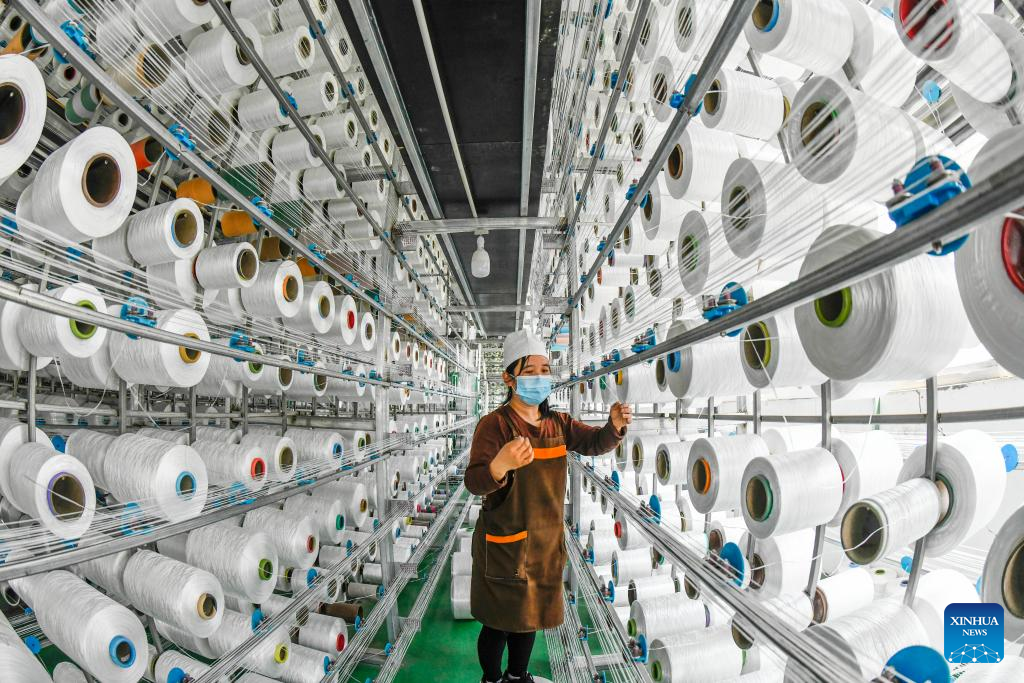 An employee works at a workshop of a textile enterprise in Zunhua City, north China's Hebei Province, April 16, 2025.