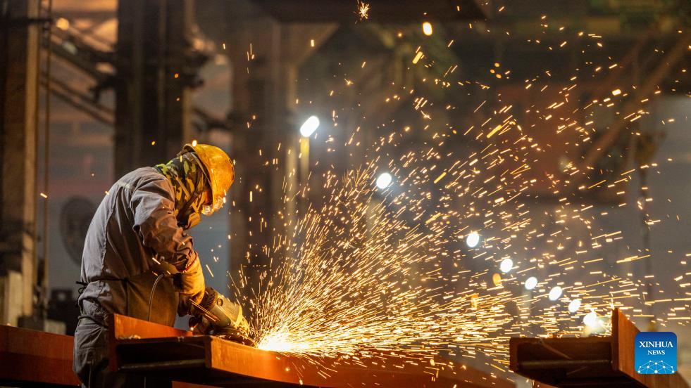 A worker works at a workshop of CRRC Qiqihar Co., Ltd. in Qiqihar, northeast China's Heilongjiang Province, April 16, 2025.