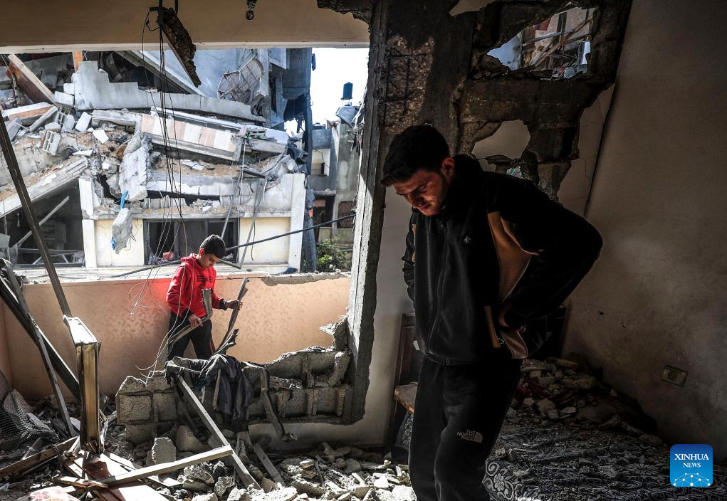 Civil Defense spokesperson Mahmoud Basal told Xinhua that 10 people, including children and women, were killed in an Israeli airstrike that targeted the home of the Hassouna family in the al-Tuffah neighborhood, northeast of Gaza City.