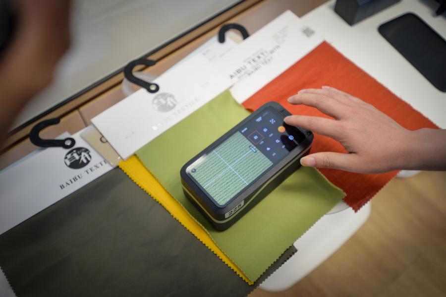 Developed by Zhijing Technology, the fabric-sourcing robot uses AI vision to extract and analyze information like fabric texture, color, material, density and craftsmanship, and then matches it with the fabric database.
