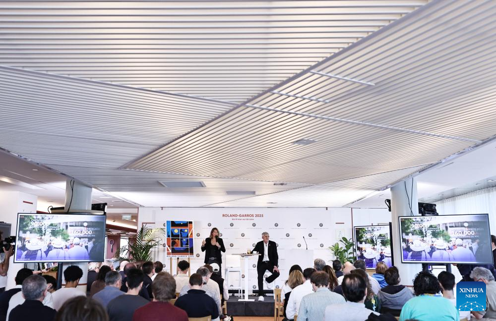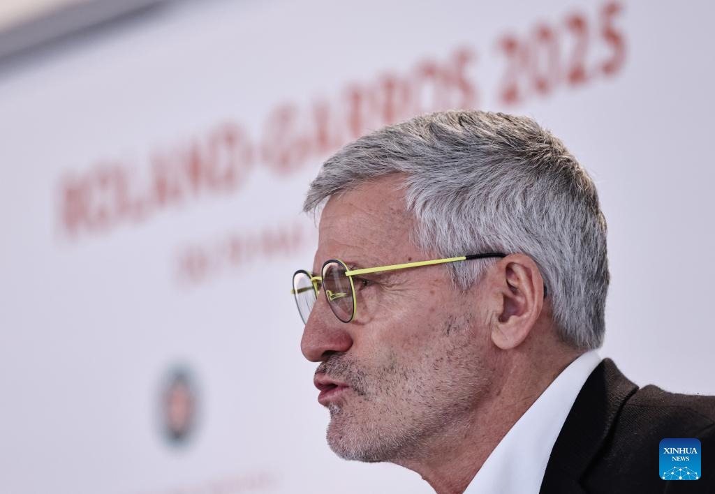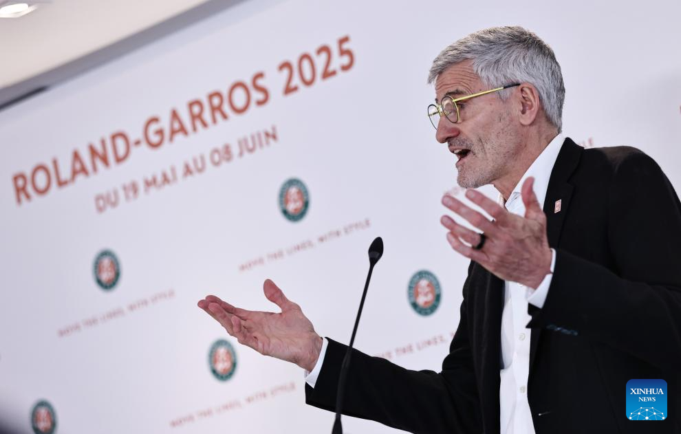 President of the French Tennis Federation Gilles Moretton addresses a press conference presenting the 2025 edition of the Roland Garros Grand Slam tennis tournament at the Roland Garros stadium, western Paris, France, April 17, 2025. (Xinhua/Gao Jing)