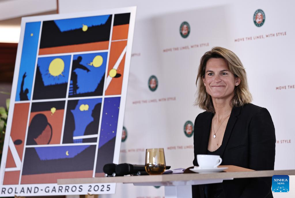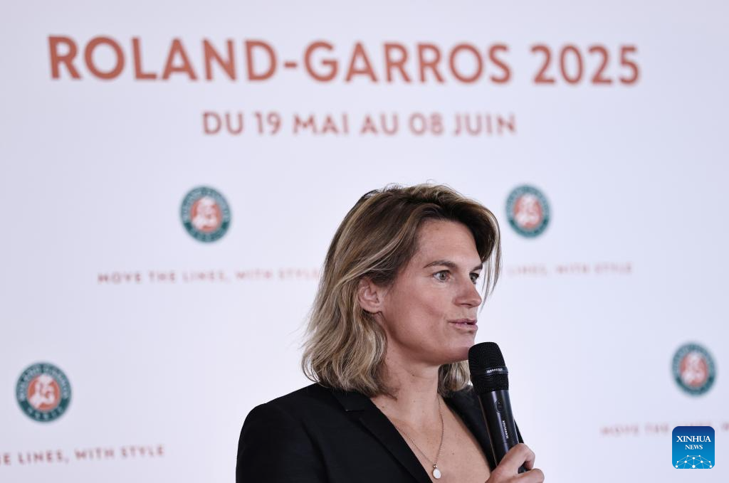 Roland-Garros Open tennis tournament's director Amelie Mauresmo attends a press conference presenting the 2025 edition of the Roland Garros Grand Slam tennis tournament at the Roland Garros stadium, western Paris, France, April 17, 2025. (Xinhua/Gao Jing)