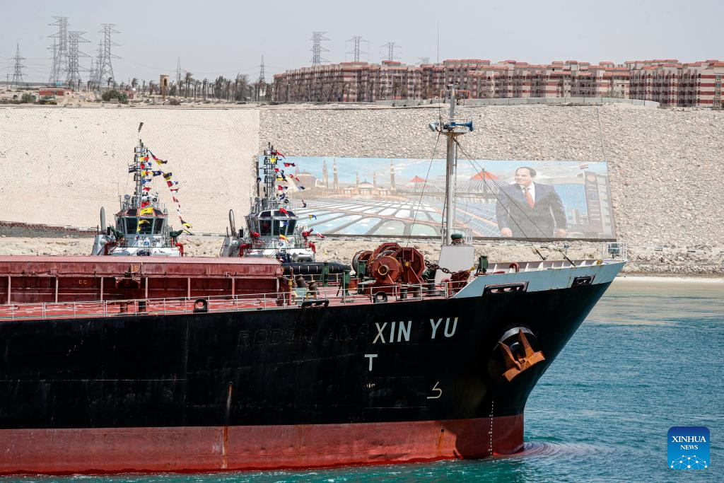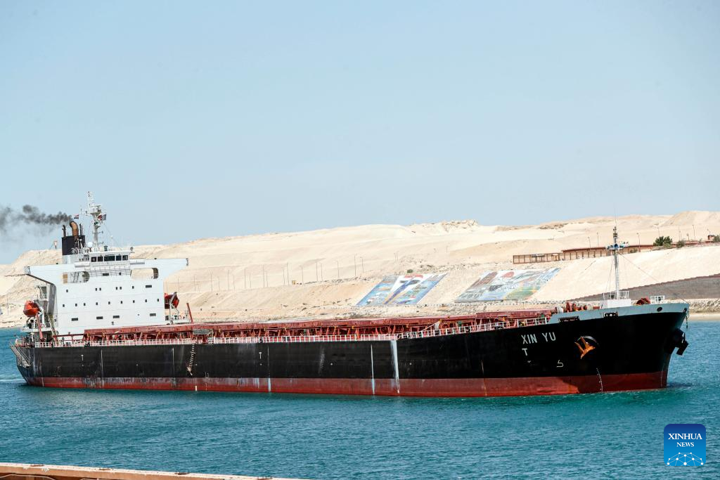 A ship sails on the Suez Canal in Ismailia Governorate, Egypt, on April 16, 2025. (Xinhua/Ahmed Gomaa)