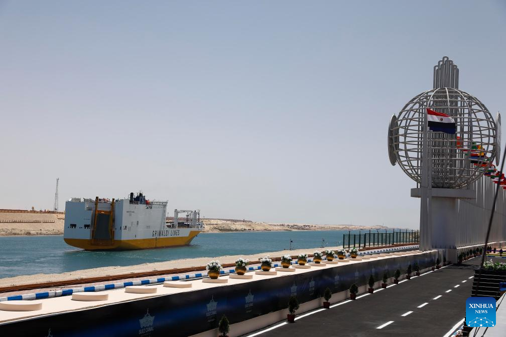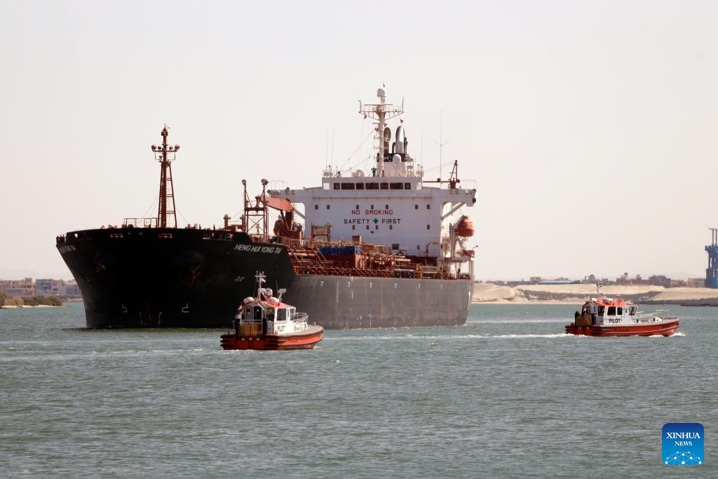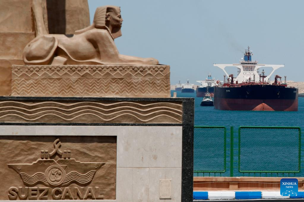 Ships sail on the Suez Canal in Ismailia Governorate, Egypt, on April 16, 2025. (Xinhua/Ahmed Gomaa)