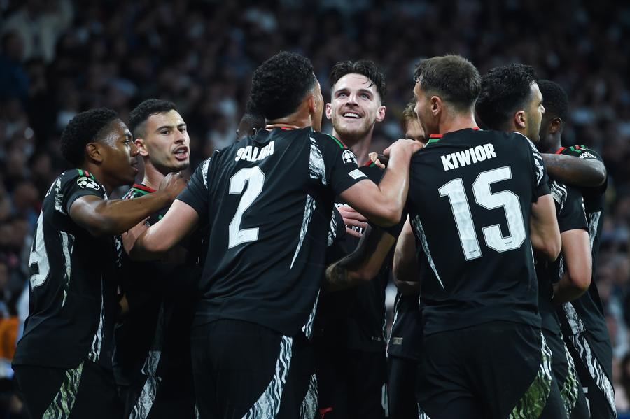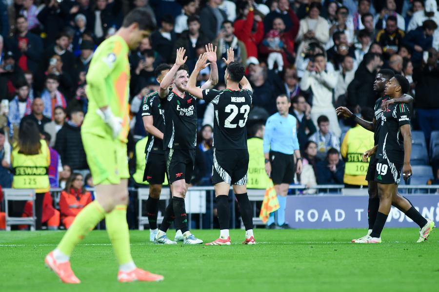MADRID, April 16 (Xinhua) -- Arsenal qualified for the semifinals of the Champions League on Wednesday, after a 2-1 win against Real Madrid that saw the defending champion crash out of the competition 5-1 on aggregate.