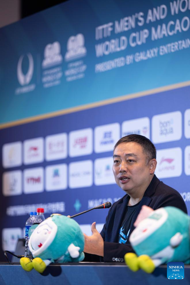 Liu Guoliang, deputy president of the International Table Tennis Federation (ITTF) and president of Chinese Table Tennis Association, attends a press conference of the ITTF Men's and Women's World Cup 2025 in Macao, China, April 18, 2025. (Xinhua/Cheong Kam Ka)
