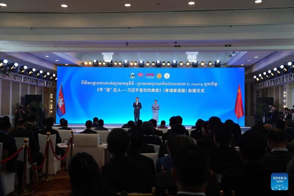 This photo taken on April 17, 2025 shows the launch ceremony of the Cambodian version of "Classics Quoted by Xi Jinping" in Phnom Penh, Cambodia. On the occasion of Chinese President Xi Jinping's state visit to Cambodia, a TV program -- the Cambodian version of "Classics Quoted by Xi Jinping" was launched on TV here on Thursday. (Xinhua/Sun Nan)