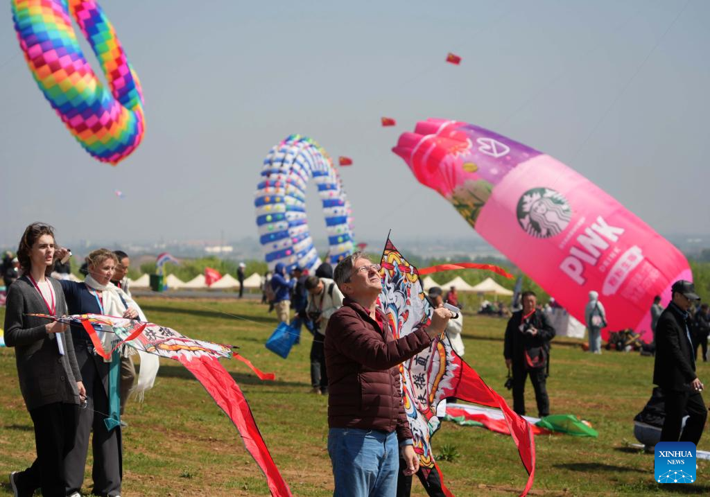 Kite fanciers fly kites at the 42nd Weifang International Kite Festival in Weifang, east China's Shandong Province, April 19, 2025. (Xinhua/Xu Suhui)