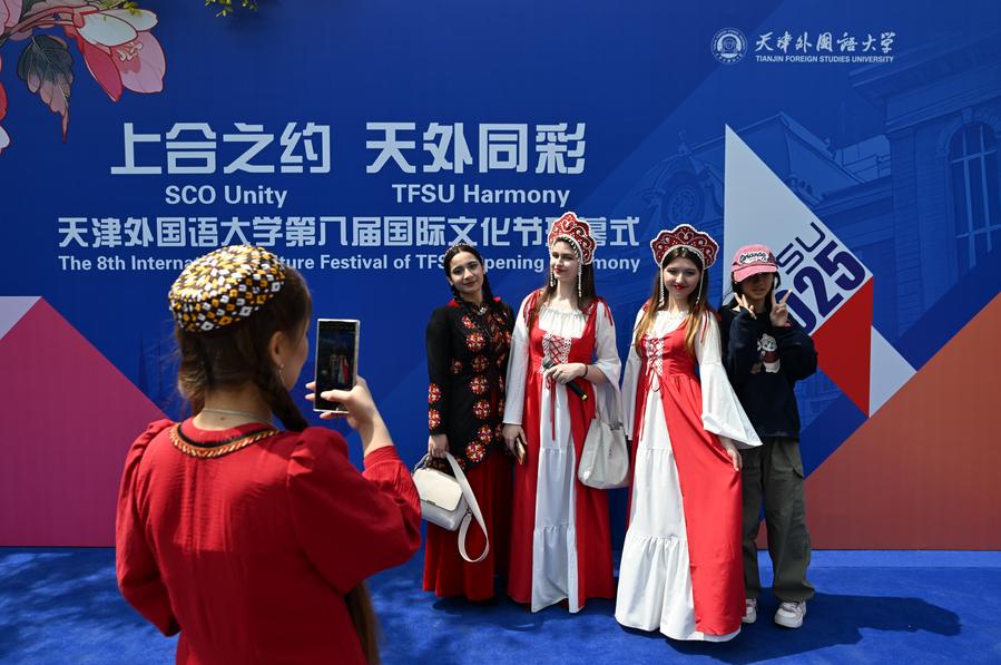 Students take selfies during the 8th International Culture Festival of Tianjin Foreign Studies University in north China's Tianjin, April 20, 2025. (Xinhua/Sun Fanyue)Students dance during the 8th International Culture Festival of Tianjin Foreign Studies University in north China's Tianjin, April 20, 2025. (Xinhua/Sun Fanyue)A performance is staged during the 8th International Culture Festival of Tianjin Foreign Studies University in north China's Tianjin, April 20, 2025. (Xinhua/Sun Fanyue)A performance is staged during the 8th International Culture Festival of Tianjin Foreign Studies University in north China's Tianjin, April 20, 2025. (Xinhua/Sun Fanyue)Students pose for photos during the 8th International Culture Festival of Tianjin Foreign Studies University in north China's Tianjin, April 20, 2025.(Xinhua/Sun Fanyue)■