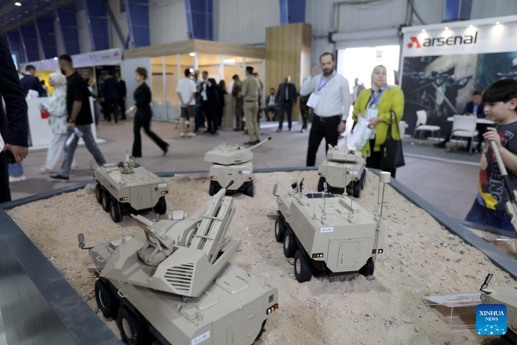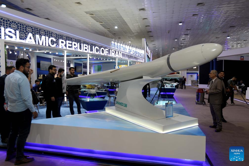 People visit the 13th Security, Defense, Military Industries and Cybersecurity Exhibition in Baghdad, Iraq, April 19, 2025. (Xinhua/Khalil Dawood)