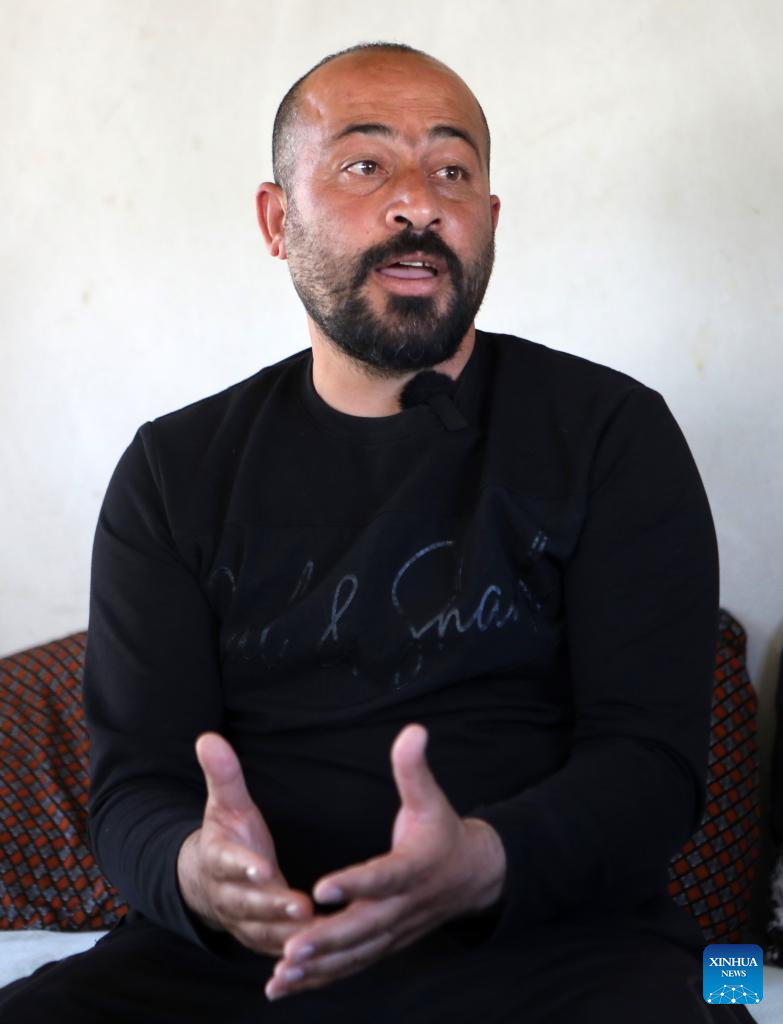 Palestinian filmmaker Hamdan Ballal, co-director of the Oscar-winning documentary "No Other Land," speaks during an interview at his house in the village of Susya in Masafer Yatta, south of Hebron, on April 19, 2025. Palestinians' bond with their land runs deep and they will never leave home even at a time of hardship and increasing Israeli settler violence, said Hamdan Ballal, co-director of the Oscar-winning documentary "No Other Land." "No Other Land" chronicles the violence facing Palestinian villagers and Israeli demolitions of Palestinian homes in the area of Masafer Yatta, southern West Bank. It has notched up festival awards and the Oscar for best documentary feature this year. (Photo by Mamoun Wazwaz/Xinhua)