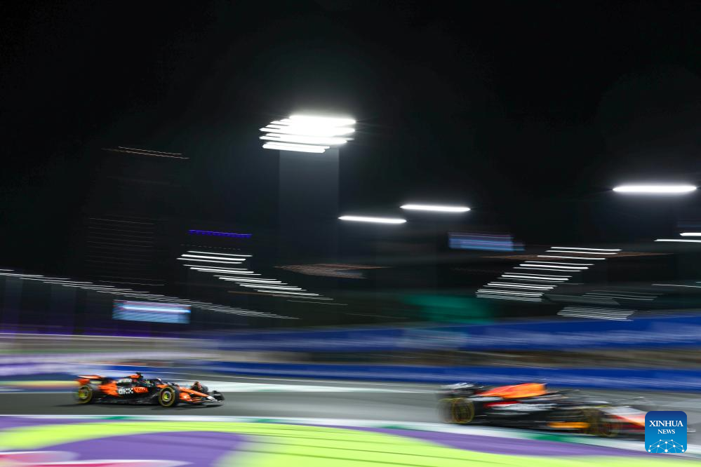 Drivers compete during the race of the Formula One Saudi Arabia Grand Prix at the Jeddah Corniche Circuit in Jeddah, Saudi Arabia, on April 20, 2025. (Xinhua/Wang Haizhou)