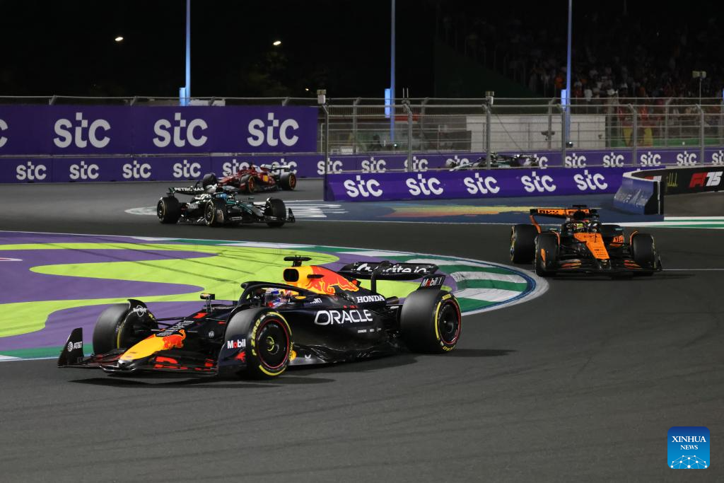 Red Bull's driver Max Verstappen of the Netherlands competes during the race of the Formula One Saudi Arabia Grand Prix at the Jeddah Corniche Circuit in Jeddah, Saudi Arabia, on April 20, 2025. (Xinhua/Wang Haizhou)