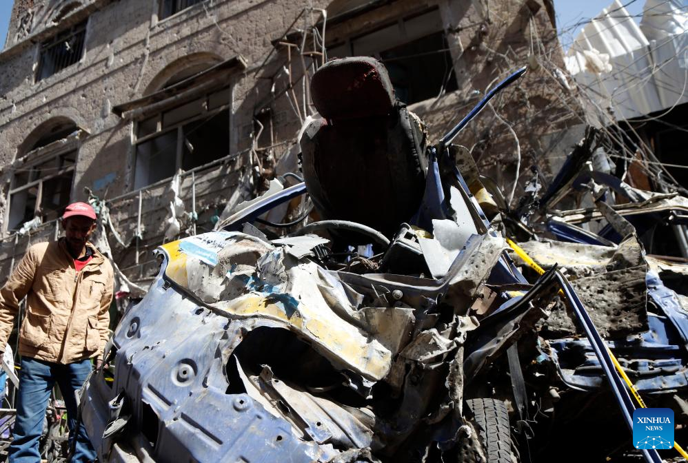SANAA, April 20 (Xinhua) -- The death toll from fresh U.S. airstrikes on a crowded market in Yemen's capital Sanaa on Sunday evening has risen to 12, with at least 30 others wounded, Houthi-controlled health authorities said in a statement.