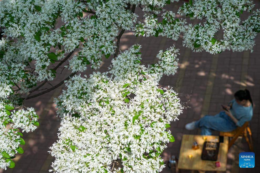 A visitor rests in a recreational courtyard in Zhoujia'an Village, Jinan City of east China's Shandong Province, April 20, 2025. (Xinhua/Zhu Zheng)