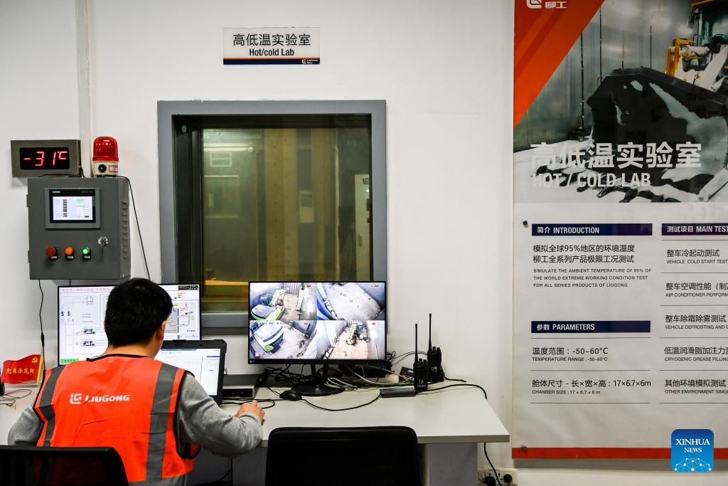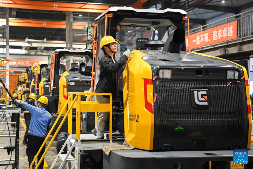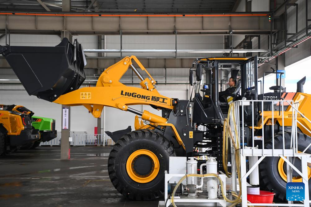 A staff member conducts test on a loader at an equipment manufacturing company in Liuzhou, south China's Guangxi Zhuang Autonomous Region, March 11, 2025. (Xinhua/Cao Yiming)