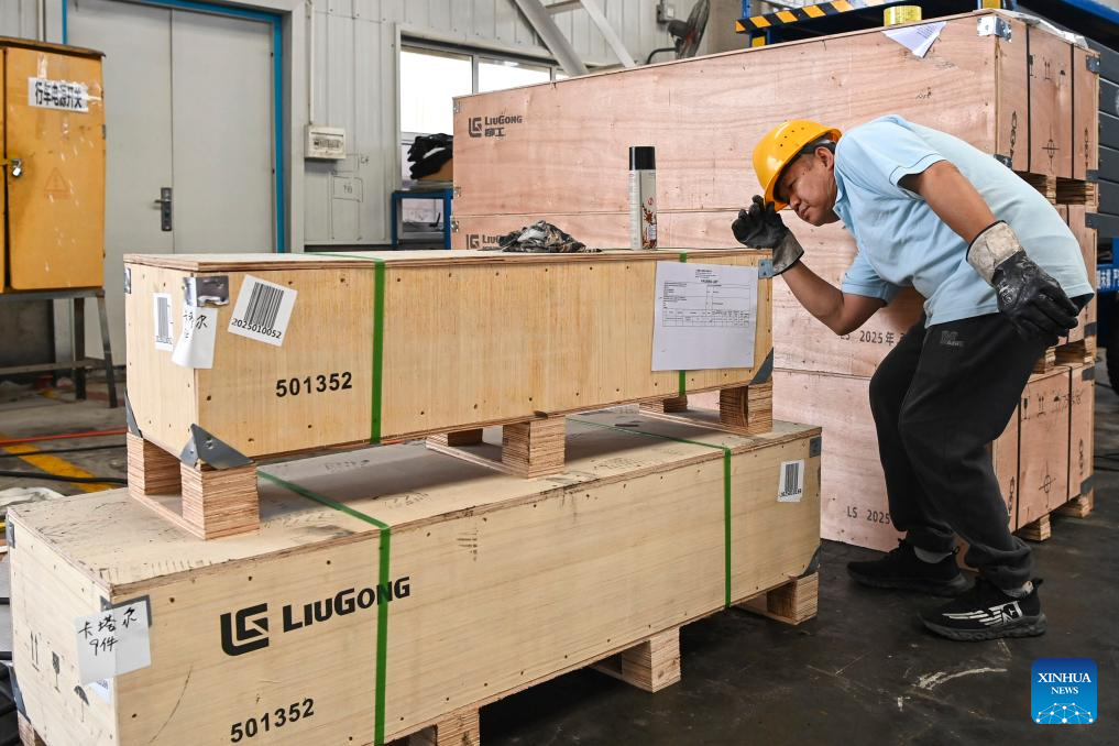 This photo taken on July 6, 2022 shows mechanical equipment produced at an equipment manufacturing company in Liuzhou for export via sea transportation at the Qinzhou Port in Qinzhou, south China's Guangxi Zhuang Autonomous Region. (Xinhua/Cao Yiming)