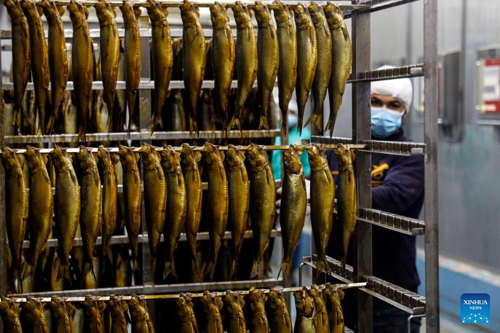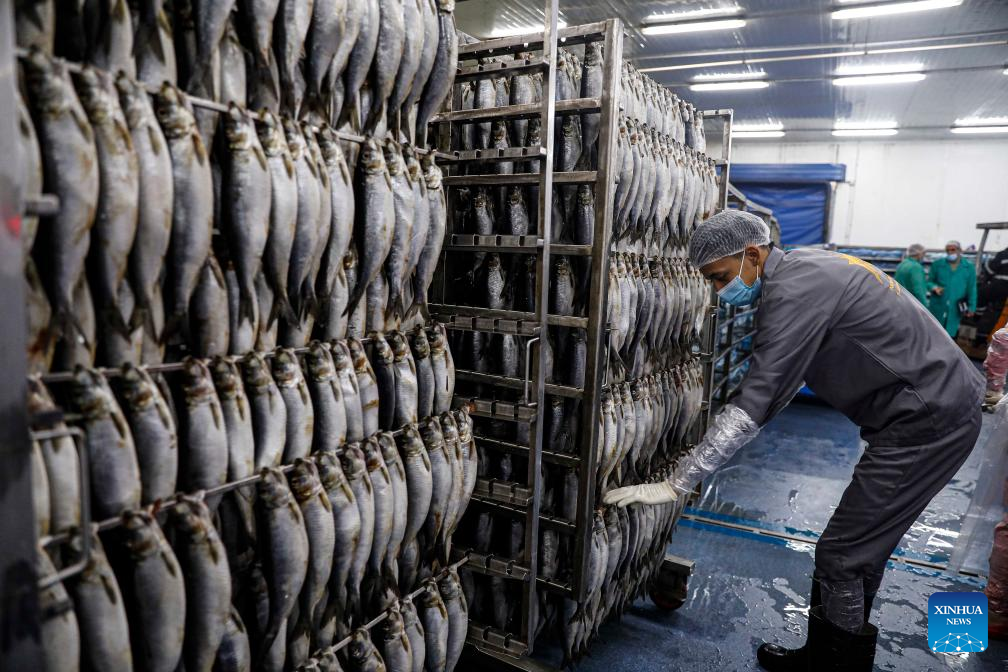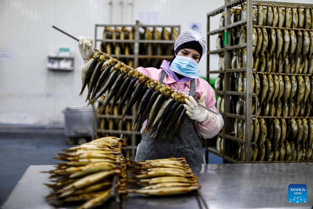 A worker arranges salted fish at a factory in Port Said, Egypt, on April 19, 2025. As dawn breaks on Orthodox Easter Monday, Egyptians of all faiths gather in parks, on balconies, and along riverbanks, clutching plates of fesikh -- a pungent, fermented fish dish that has anchored the country's millennia-old festival, Sham El-Nessim, since the days of the pharaohs. (Xinhua/Ahmed Gomaa)