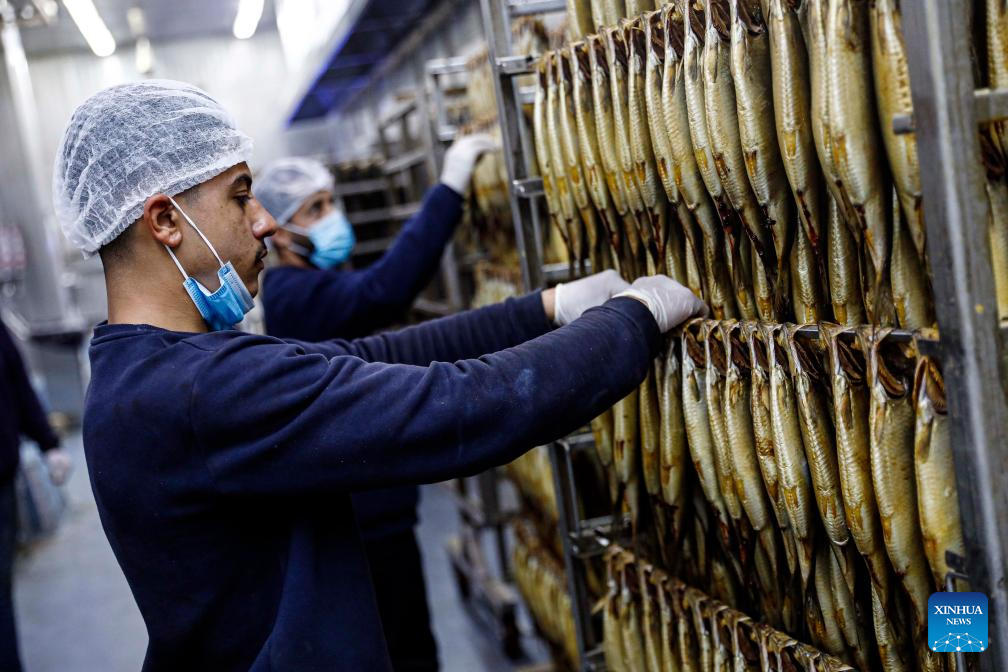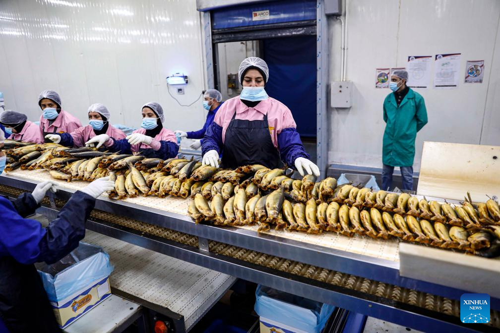 Workers arrange salted fish at a factory in Port Said, Egypt, on April 19, 2025. As dawn breaks on Orthodox Easter Monday, Egyptians of all faiths gather in parks, on balconies, and along riverbanks, clutching plates of fesikh -- a pungent, fermented fish dish that has anchored the country's millennia-old festival, Sham El-Nessim, since the days of the pharaohs. (Xinhua/Ahmed Gomaa)