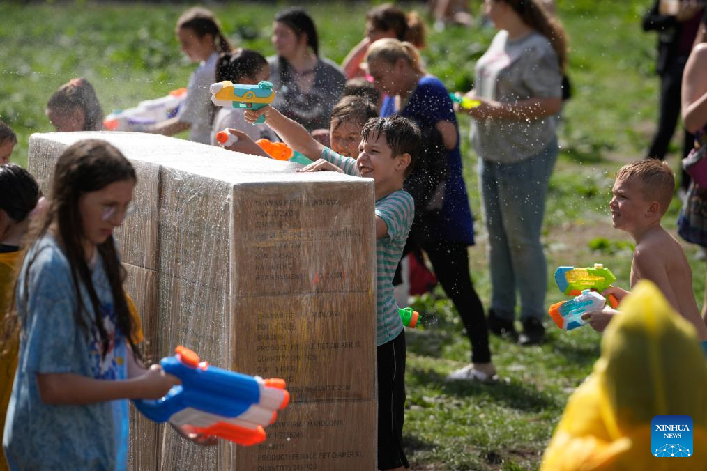 Children play with toy water guns during Smigus-Dyngus, or Wet Monday, a Polish Easter tradition, in Lodz, Poland on April 21, 2025. The centuries-old custom, celebrated on the second day of Easter, involves playful water fights to mark the arrival of spring. (Photo by Jaap Arriens/Xinhua)