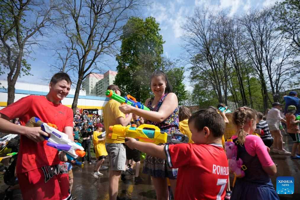 People enjoy water fights during Smigus-Dyngus, or Wet Monday, a Polish Easter tradition, in Lodz, Poland, April 21, 2025. The centuries-old custom, celebrated on the second day of Easter, involves playful water fights to mark the arrival of spring. (Photo by Jaap Arriens/Xinhua)