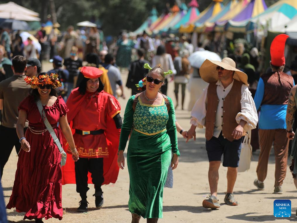 People in costumes participate in the Renaissance Pleasure Faire in Irwindale, Los Angeles County, the United States, on April 20, 2025. (Photo by Qiu Chen/Xinhua)