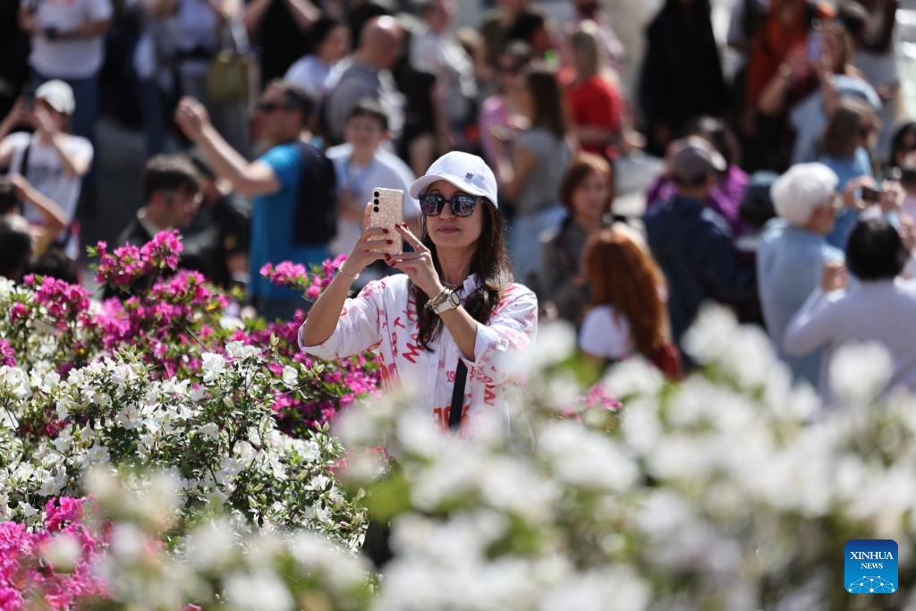People visit Piazza di Spagna in Rome, Italy, during the Easter holiday on April 21, 2025. (Xinhua/Li Jing)