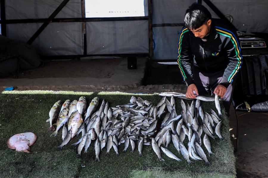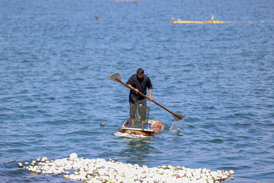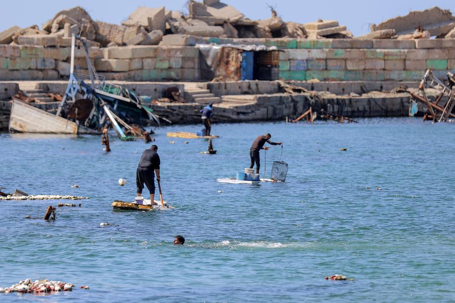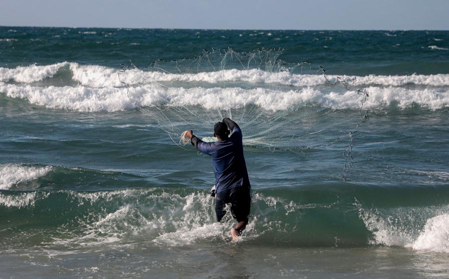 GAZA, April 22 (Xinhua) -- Every morning, long before the sun rises over the horizon, Salim Abu Rayala, a Palestinian fisherman from Al-Shati refugee camp west of Gaza City, unties his weathered wooden boat and pushes it into the waters of the Mediterranean.