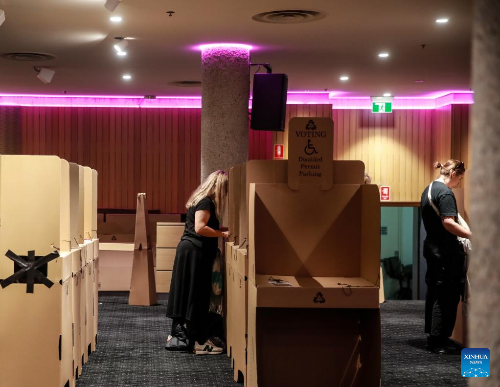 Voters are seen at a voting center of Australia's federal election in Sydney, Australia, May 3, 2025. Australia's election day has arrived with millions of voters expected to cast their ballots to decide the composition of the 48th federal parliament. (Xinhua/Ma Ping)
