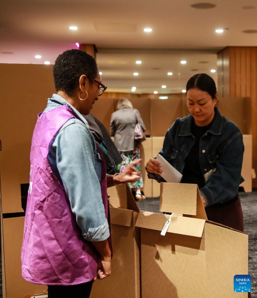 Citizens register at a voting center of Australia's federal election in Sydney, Australia, May 3, 2025. Australia's election day has arrived with millions of voters expected to cast their ballots to decide the composition of the 48th federal parliament. (Xinhua/Ma Ping)
