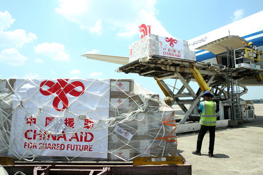 YANGON, April 23 (Xinhua) -- The eighth batch of emergency humanitarian aid supplies dispatched by the Chinese government on Tuesday arrived at Yangon International Airport in Myanmar, which was devastated by a 7.9-magnitude earthquake on March 28.