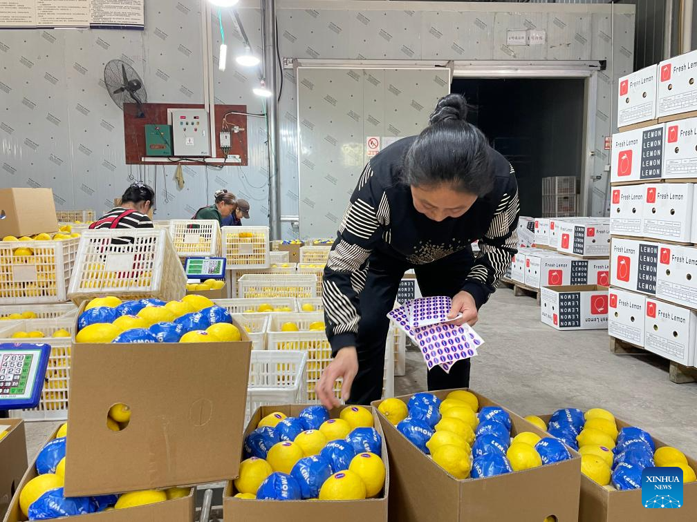 (250423) -- CHONGQING, April 23, 2025 (Xinhua) -- A staff member labels selected lemons for export to Vietnam at a fruit company in southwest China's Chongqing Municipality, April 14, 2025. Over the years, along with the deepening of the Belt and Road Initiative (BRI) and the development of the New International Land-Sea Trade Corridor, export and import of agricultural products between China and Southeast Asia countries have been continuously strengthened. Agricultural products from both sides won great popularity among the buyers. (Xinhua)