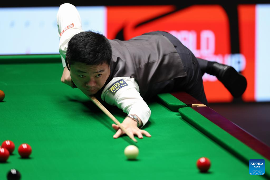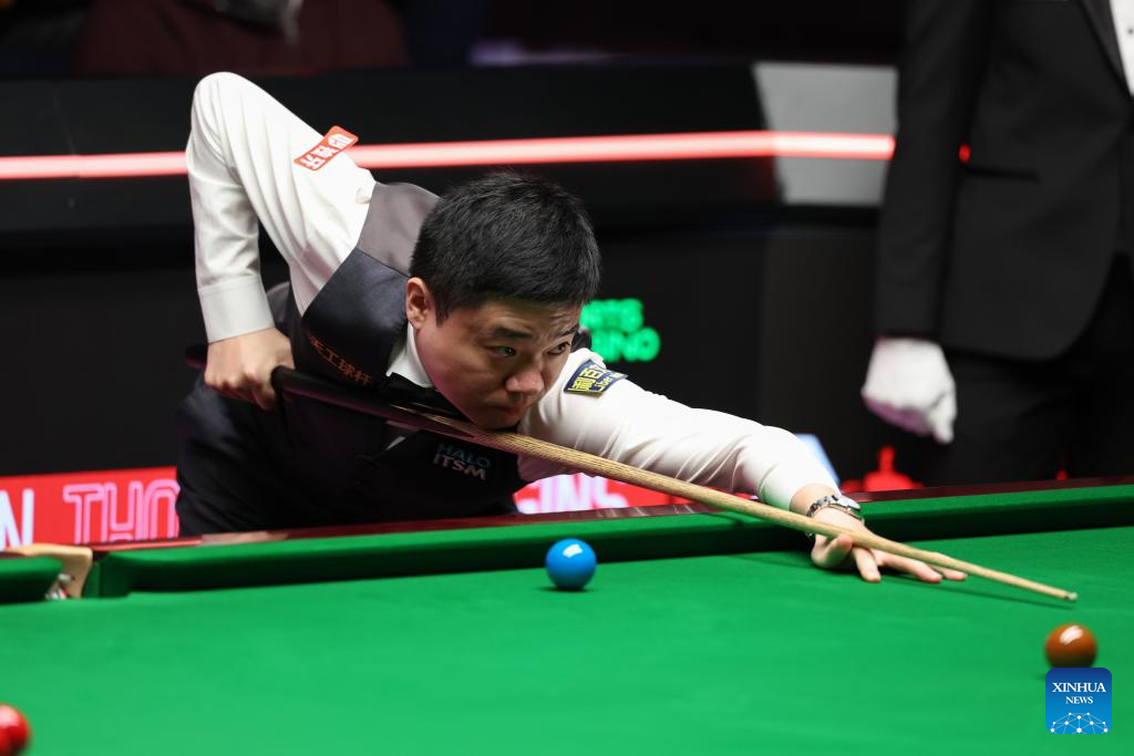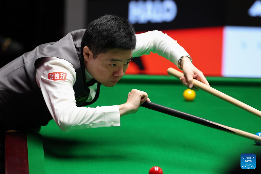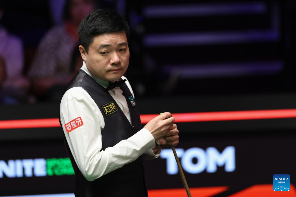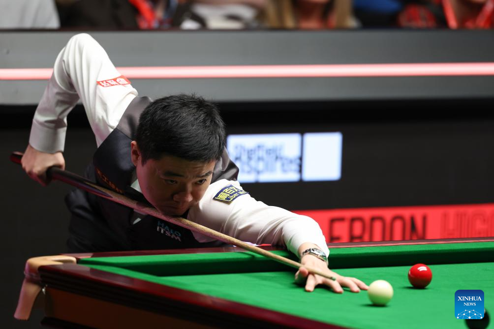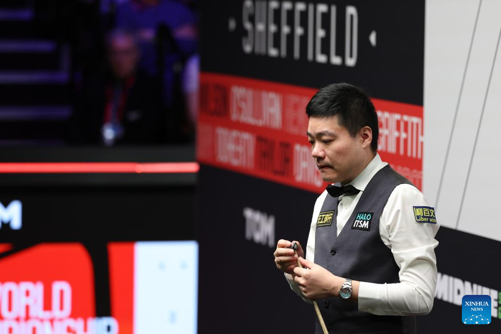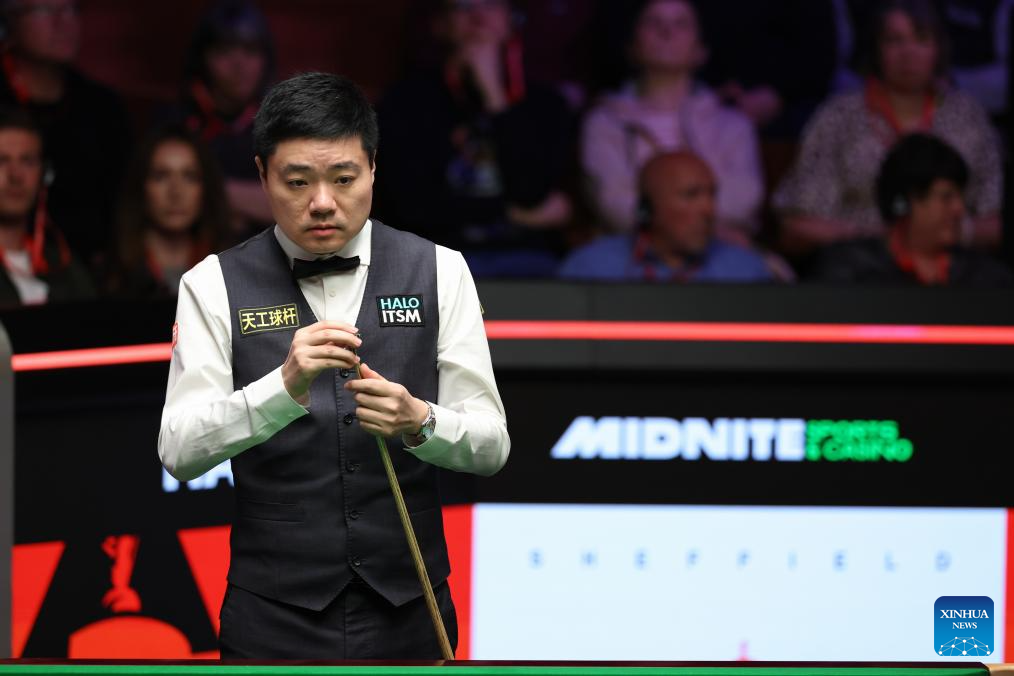 Ding Junhui of China competes during the round 1 match against Zak Surety of England at World Snooker Championship 2025 in Sheffield, Britain, April 22, 2025. (Photo by Zhai Zheng/Xinhua)
