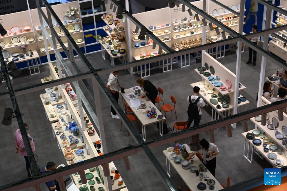 An overseas buyer visits a porcelain area of the 137th China Import and Export Fair in Guangzhou, south China's Guangdong Province, April 23, 2025. The second phase of the 137th China Import and Export Fair, also known as Canton Fair, focusing on quality home furnishings, opened on Wednesday with more than 10,000 exhibiting companies. (Xinhua/Deng Hua)