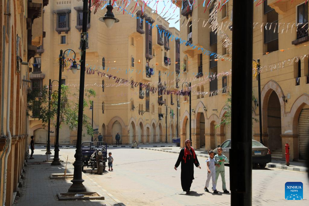 People walk in the neighborhood of Sayeda Zainab in Cairo, Egypt, on April 19, 2025. With its sea of minarets, centuries-old mosques, and timeworn alleys, Cairo--a city steeped in history--is undertaking a massive effort to protect and revitalize its cultural and architectural heritage. (Xinhua/Sui Xiankai)