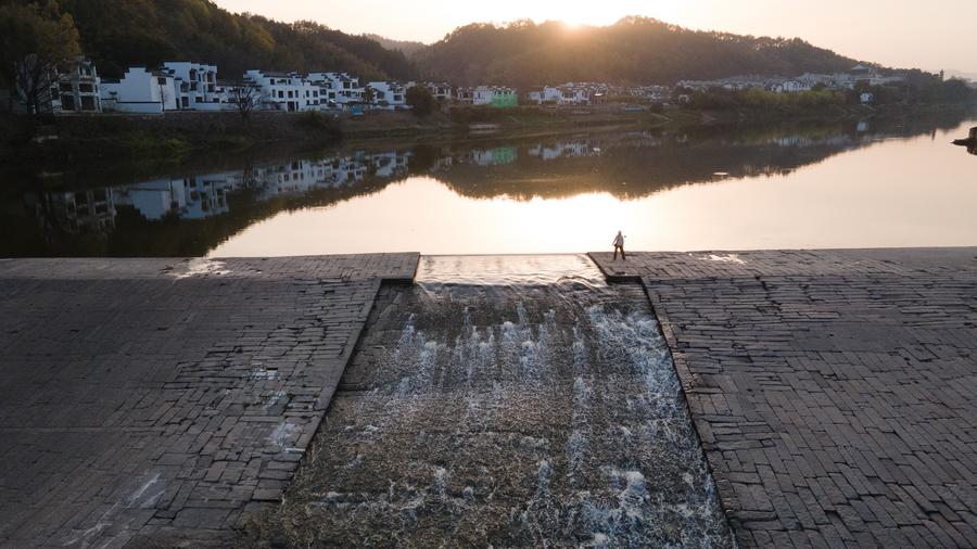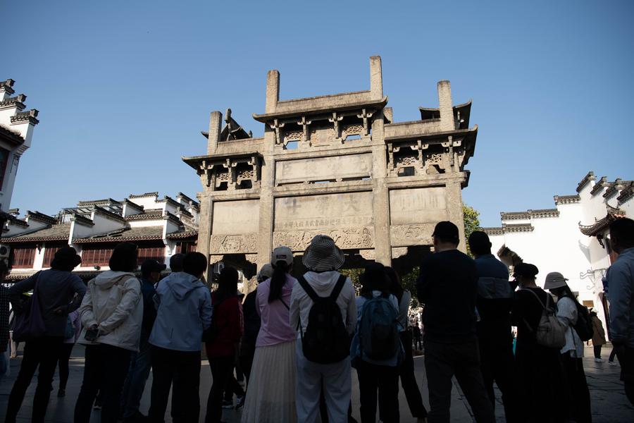 SHEXIAN, April 23 (Xinhua) -- Located at the junction of Huangshan Mountains and Xin'an River, Shexian County of east China's Anhui Province has carried the essence of Hui-style culture and architecture. Huizhou Ancient City, lying at the heart of Shexian, is one of the best-preserved ancient towns in China. Its network of ancient streets, alleys, and bridges is complemented by traditional residences, ancestral halls, and memorial archways.