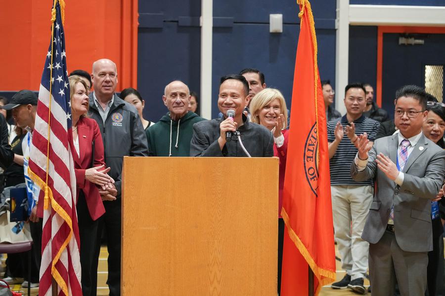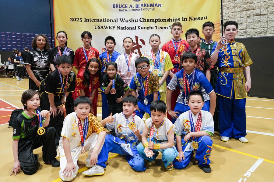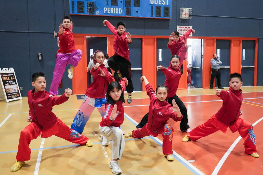 NEW YORK, April 23 (Xinhua) -- On a crisp spring Saturday, the sound of swords slicing through the air and the rhythmic thuds of martial artists landing strikes echoed through a packed venue in Nassau County, Long Island, New York State. But this was more than a competition - it was a celebration of culture, discipline, and unity.