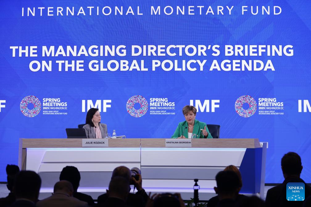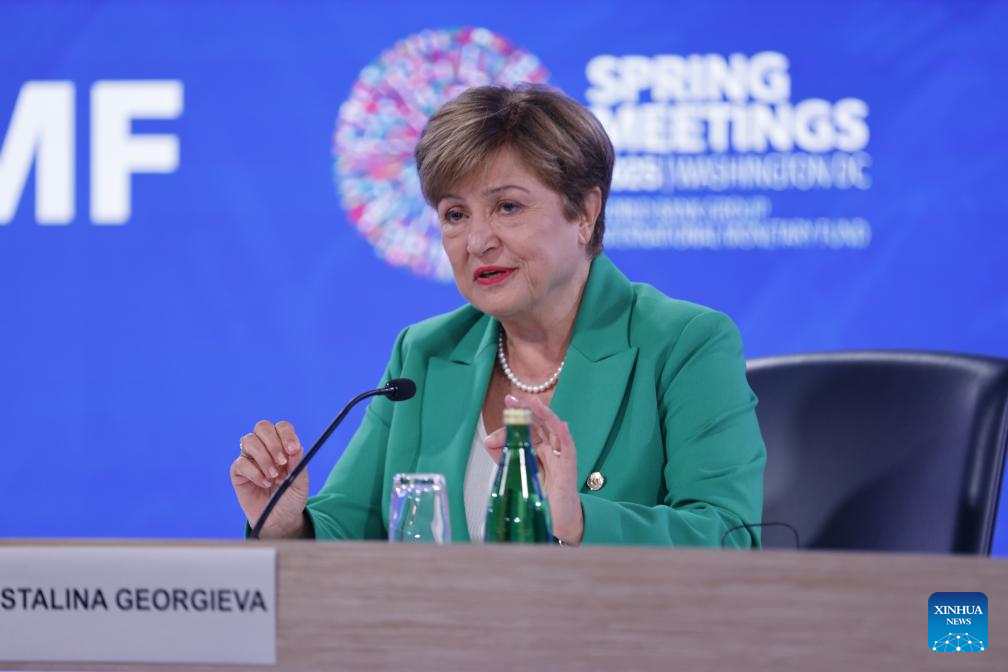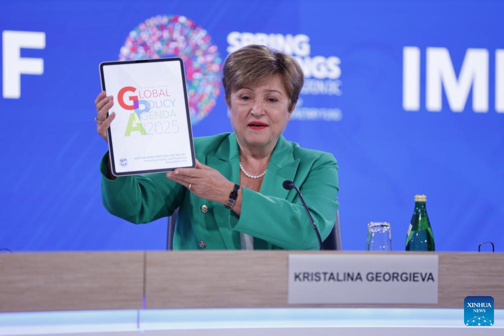 International Monetary Fund (IMF) Managing Director Kristalina Georgieva presents the newly released Global Policy Agenda at a press conference during the 2025 Spring Meetings of the World Bank Group and IMF in Washington, D.C., the United States, on April 24, 2025. International Monetary Fund (IMF) Managing Director Kristalina Georgieva said on Thursday that significant shifts in trade policies have led to a sharp increase in uncertainty, calling on countries to engage in constructive cooperation and resolve trade disputes promptly. (Xinhua/Xie E)