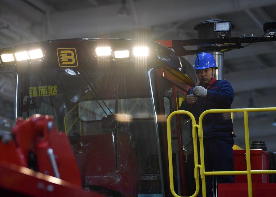 URUMQI, April 23 (Xinhua) -- Despite April being the cotton sowing season in northwest China's Xinjiang, production of cotton harvesters is already at full tilt inside local factories to prepare for the autumn harvest.