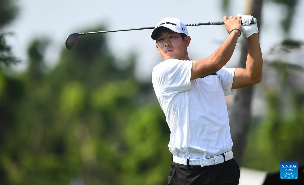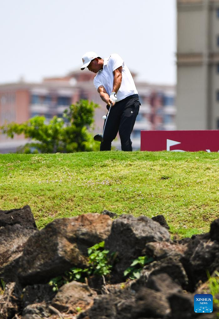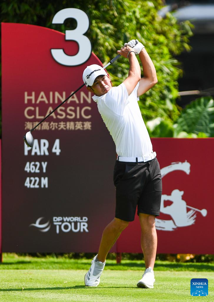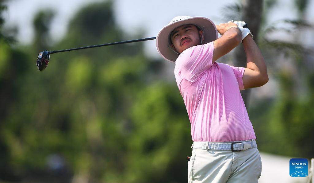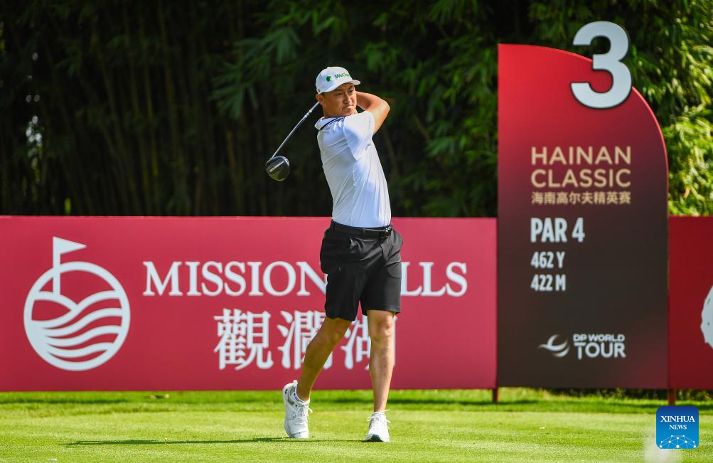 Jin Zihao of China hits his tee shot during the round 1 at the Hainan Classic golf tournament of the DP World Tour in Haikou, south China's Hainan Province, April 24, 2025. (Xinhua/Yang Guanyu)