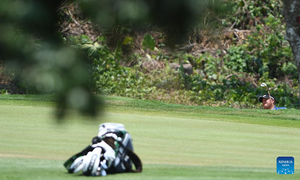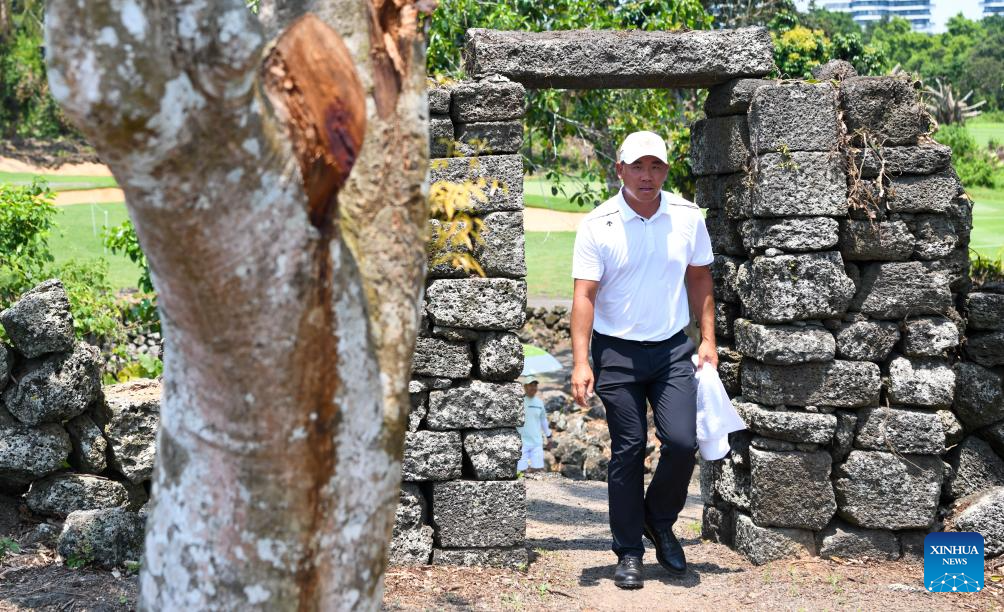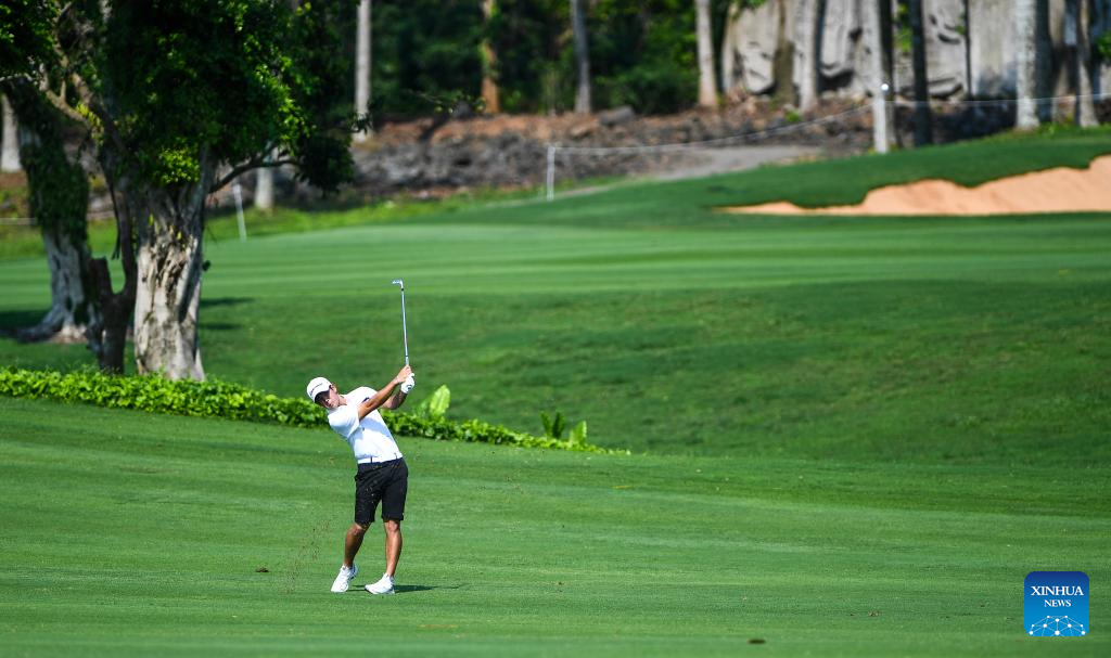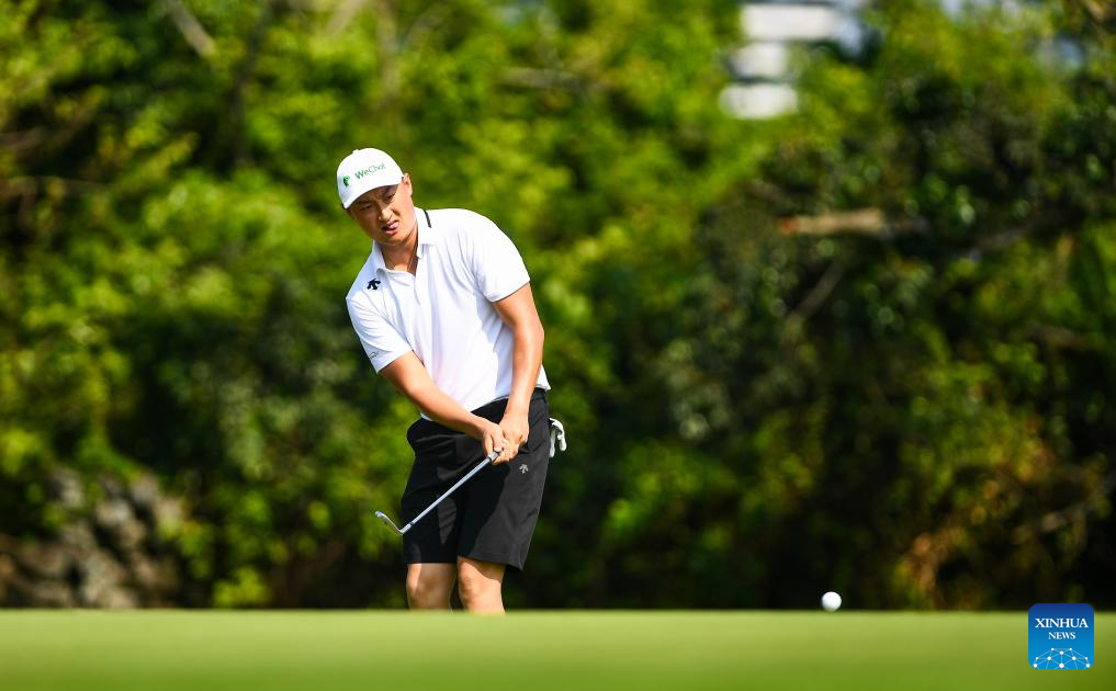 Wu Ashun of China competes during the round 1 at the Hainan Classic golf tournament of the DP World Tour in Haikou, south China's Hainan Province, April 24, 2025. (Xinhua/Yang Guanyu)