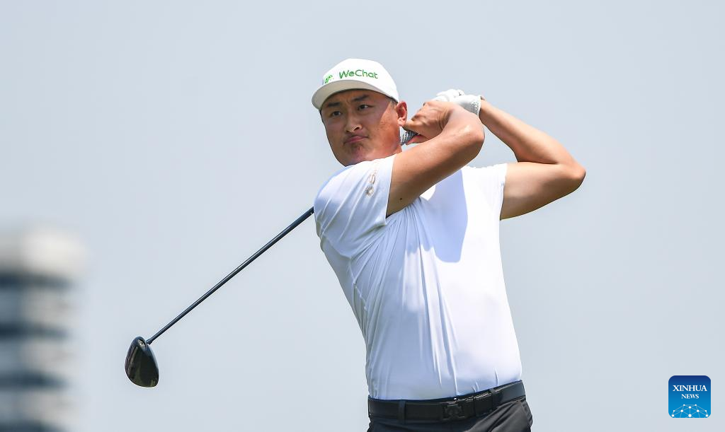 Wu Ashun of China hits his tee shot during the round 1 at the Hainan Classic golf tournament of the DP World Tour in Haikou, south China's Hainan Province, April 24, 2025. (Xinhua/Yang Guanyu)