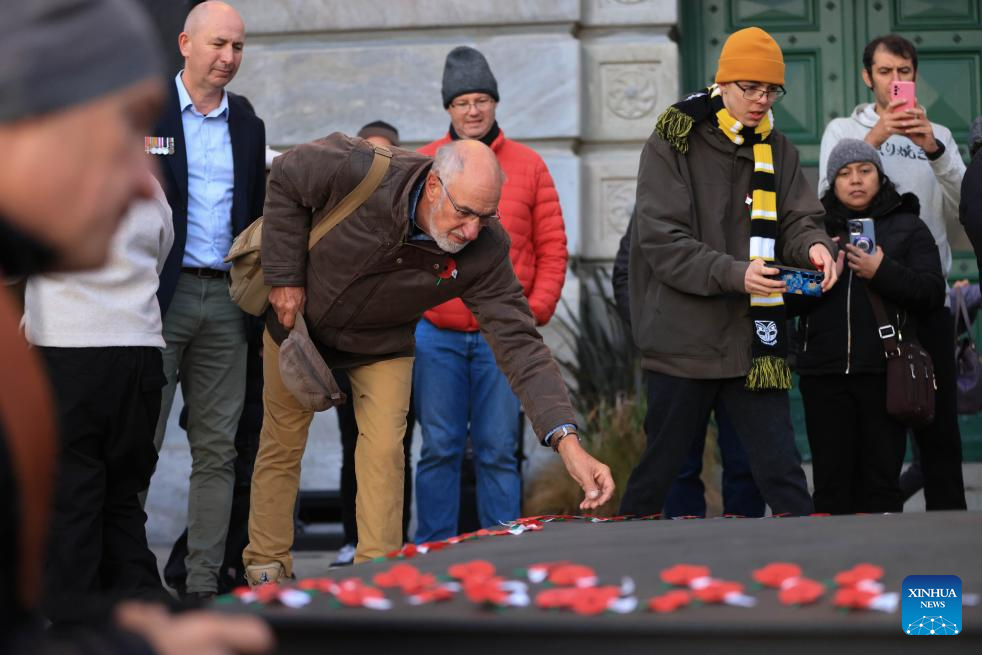 This photo taken on April 25, 2025 shows a scene of the Anzac Day memorial in Wellington, New Zealand. Anzac Day, which falls on April 25, marks the anniversary of the first major military action fought by Australian and New Zealand Army Corps (Anzac) in World War I on Turkey's Gallipoli Peninsula in 1915. (Photo by Meng Tao/Xinhua)