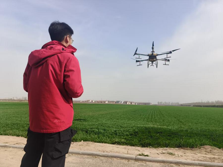 Now, as it's time to spray pesticide on the wheat, Zehui's approach is vastly different from his father's. Whereas his father would have driven agricultural machinery to do the job, Zehui simply sets the route for his drone and presses a button.