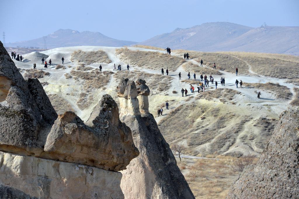 Tourists visit Cappadocia in Nevsehir, Türkiye, on April 24, 2025. (Mustafa Kaya/Handout via Xinhua)