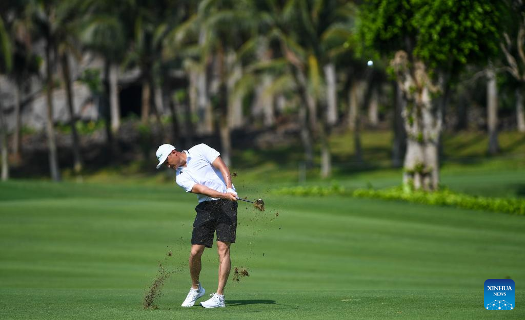 Li Haotong of China hits his ball during the round 1 at the Hainan Classic golf tournament of the DP World Tour in Haikou, south China's Hainan Province, April 24, 2025. (Xinhua/Yang Guanyu)