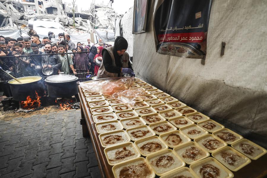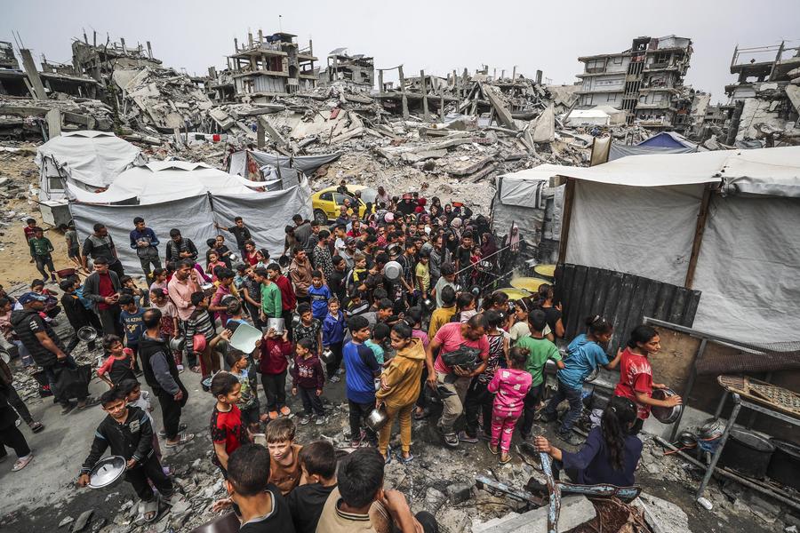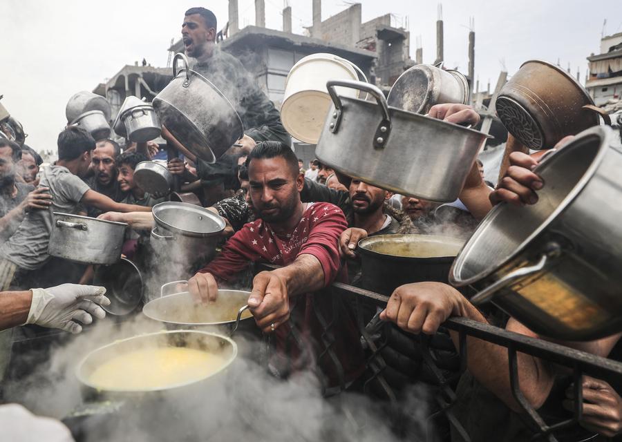 Palestinians wait to receive free food from a food distribution center in Gaza City, on April 24, 2025. (Photo by Mahmoud Zaki/Xinhua)Palestinians receive free food from a food distribution center in Gaza City, on April 24, 2025. (Photo by Mahmoud Zaki/Xinhua)Palestinians wait to receive free food from a food distribution center in Gaza City, on April 24, 2025. (Photo by Mahmoud Zaki/Xinhua)Palestinians wait to receive free food from a food distribution center in Gaza City, on April 24, 2025. (Photo by Mahmoud Zaki/Xinhua)Palestinians receive free food from a food distribution center in Gaza City, on April 24, 2025. (Photo by Mahmoud Zaki/Xinhua)■