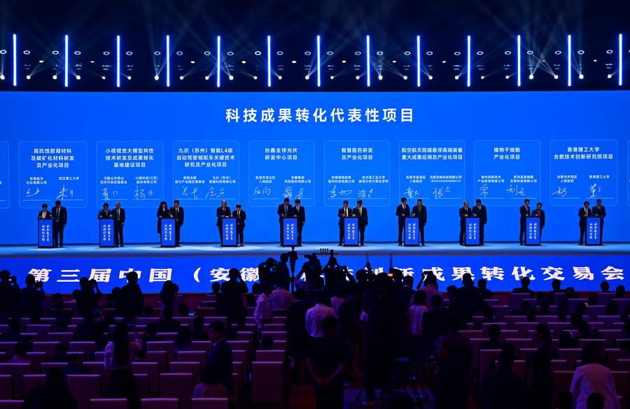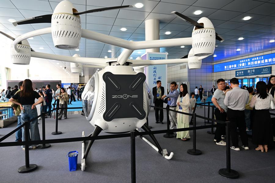 A signing ceremony for representative projects of scientific and technological achievement commercialization is held during the opening ceremony of the 3rd China (Anhui) Science and Technology Innovation Achievement Transformation Fair in Hefei, capital of east China's Anhui Province, April 26, 2025. (Xinhua/Zhou Mu)This photo taken on April 26, 2025 shows an aircraft displayed at the 3rd China (Anhui) Science and Technology Innovation Achievement Transformation Fair in Hefei, capital of east China's Anhui Province. (Xinhua/Zhou Mu)Children experience a smart cockpit at the 3rd China (Anhui) Science and Technology Innovation Achievement Transformation Fair in Hefei, capital of east China's Anhui Province, April 26, 2025. (Xinhua/Zhou Mu)This photo taken on April 26, 2025 shows a flying vehicle displayed at the 3rd China (Anhui) Science and Technology Innovation Achievement Transformation Fair in Hefei, capital of east China's Anhui Province. (Xinhua/Zhou Mu)A child visits the 3rd China (Anhui) Science and Technology Innovation Achievement Transformation Fair in Hefei, capital of east China's Anhui Province, April 26, 2025. (Xinhua/Zhou Mu)People visit the 3rd China (Anhui) Science and Technology Innovation Achievement Transformation Fair in Hefei, capital of east China's Anhui Province, April 26, 2025. (Xinhua/Zhou Mu)Visitors experience XR movie at the 3rd China (Anhui) Science and Technology Innovation Achievement Transformation Fair in Hefei, capital of east China's Anhui Province, April 26, 2025. (Xinhua/Zhou Mu)A robot plays the piano at the 3rd China (Anhui) Science and Technology Innovation Achievement Transformation Fair in Hefei, capital of east China's Anhui Province, April 26, 2025. (Xinhua/Zhou Mu)Children try VR equipment at the 3rd China (Anhui) Science and Technology Innovation Achievement Transformation Fair in Hefei, capital of east China's Anhui Province, April 26, 2025. (Xinhua/Zhou Mu)A child rides on a robot at the 3rd China (Anhui) Science and Technology Innovation Achievement Transformation Fair in Hefei, capital of east China's Anhui Province, April 26, 2025. (Xinhua/Zhou Mu)A child tries a cockpit simulator at the 3rd China (Anhui) Science and Technology Innovation Achievement Transformation Fair in Hefei, capital of east China's Anhui Province, April 26, 2025. (Xinhua/Zhou Mu)People watch a data-driven robot specialized in chemistry during the 3rd China (Anhui) Science and Technology Innovation Achievement Transformation Fair in Hefei, capital of east China's Anhui Province, April 26, 2025. (Xinhua/Zhou Mu)A robot plays the piano at the 3rd China (Anhui) Science and Technology Innovation Achievement Transformation Fair in Hefei, capital of east China's Anhui Province, April 26, 2025. (Xinhua/Zhou Mu)People participate in the opening ceremony of the 3rd China (Anhui) Science and Technology Innovation Achievement Transformation Fair in Hefei, capital of east China's Anhui Province, April 26, 2025. (Xinhua/Zhou Mu)■